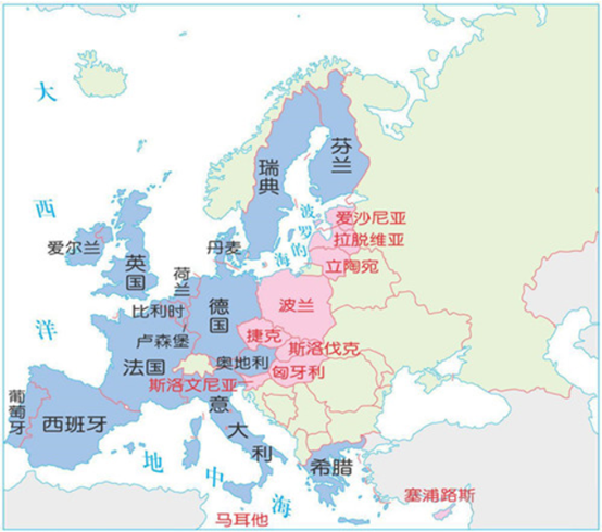 2007年1月1日加入的国家:保加利亚, 罗马尼亚。
